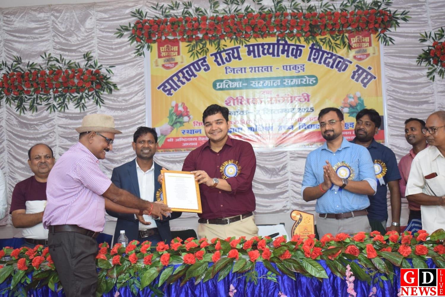 पाकुड़। झारखंड राज्य माध्यमिक शिक्षक संघ, जिला शाखा पाकुड़ की ओर से शिक्षक दिवस की पूर्व संध्या पर जिदातो बालिका उच्च विद्यालय में 25वां प्रतिभा सम्मान समारोह सह शैक्षिक संगोष्ठी आयोजित की गई। कार्यक्रम में मुख्य अतिथि के रूप में उपायुक्त मनीष कुमार और जिला शिक्षा अधीक्षक नयन कुमार मौजूद रहे। संगोष्ठी में “माध्यमिक शिक्षा में गुणात्मक सुधार” विषय पर विद्वान शिक्षकों और संघ पदाधिकारियों ने अपने विचार रखे। इस दौरान माध्यमिक परीक्षा 2025 में उत्कृष्ट प्रदर्शन करने वाले छात्र-छात्राओं को प्रशस्ति पत्र और मोमेंटो देकर सम्मानित किया गया। वहीं सेवानिवृत्त शिक्षकों को शाल और मोमेंटो भेंटकर सम्मानित किया गया।
