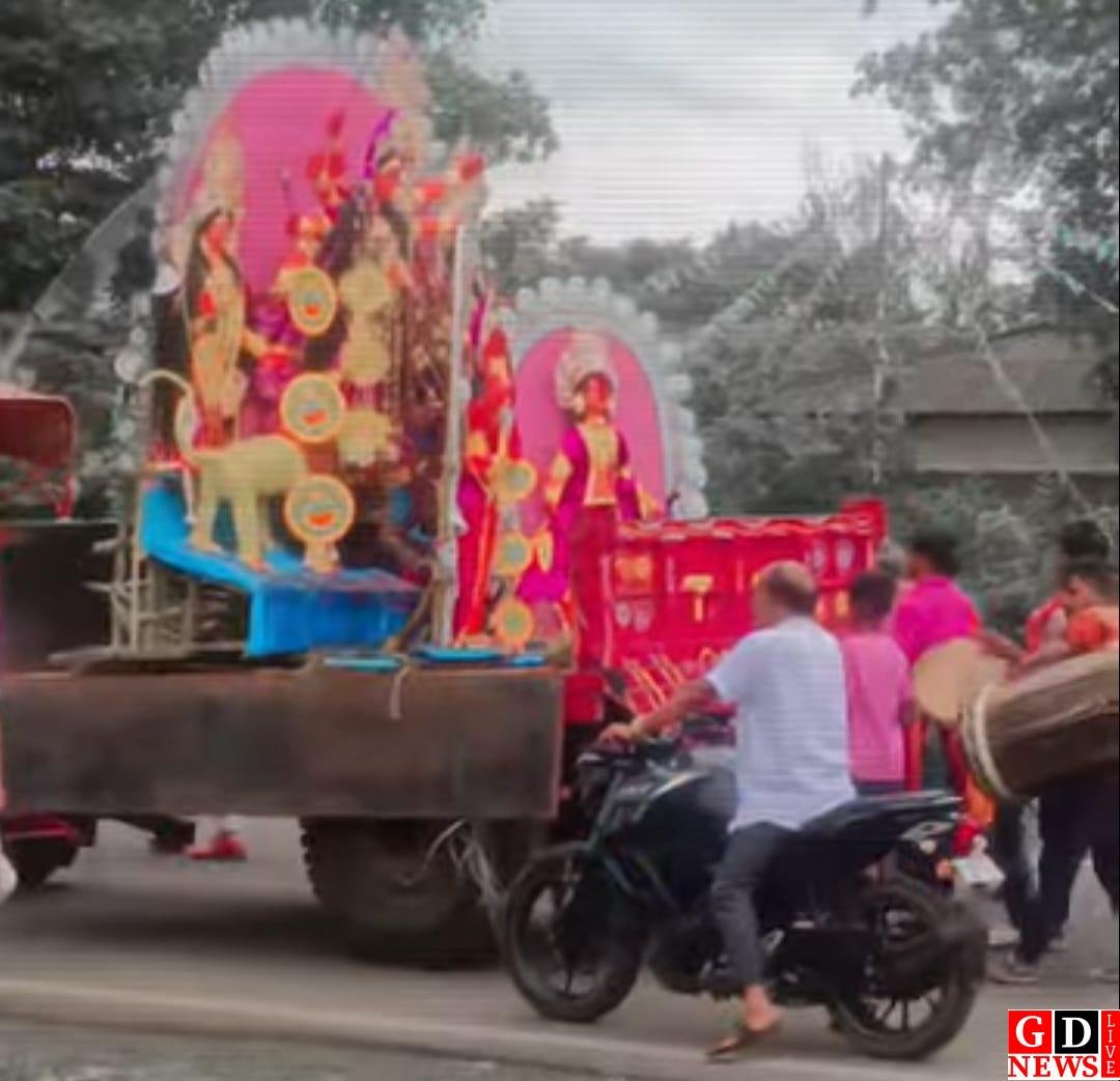 लिट्टीपाड़ा (पाकुड़)शारदीय नवरात्रि के समापन पर रविवार को श्रद्धालुओं ने माँ दुर्गा को नम आंखों से विदाई दी। दुर्गा पूजा पंडालों में महिलाओं ने पारंपरिक सिंदूर खेला की रस्म निभाते हुए माँ को विदा किया। माहौल भावुक था, लेकिन आस्था और उल्लास की चमक भी हर चेहरे पर झलक रही थी।विदाई से पहले भक्तों ने माँ दुर्गा की विधिपूर्वक आरती की और एक-दूसरे को गले लगाकर बुराई पर अच्छाई की जीत का संदेश दिया। महिलाएं पारंपरिक लाल-सफेद साड़ियों में सजधज कर पहुंचीं और माँ के चरणों में सिंदूर चढ़ाने के बाद एक-दूसरे को सिंदूर लगाया । “अगले बरस तू जल्दी आ” के जयकारे गूंजते रहे। ढाक की थाप, शंखनाद और उलगुलान करती भावनाओं के बीच माँ दुर्गा को विदा कर भक्तों की आंखें भर आईं।विसर्जन यात्रा के दौरान भक्तों ने माँ दुर्गा की मूर्ति को जल में प्रवाहित कर उनसे अपने घरों में अगले वर्ष फिर से आने का वादा लिया। इस दौरान कमिटी के सदस्य मौजूद रहे।