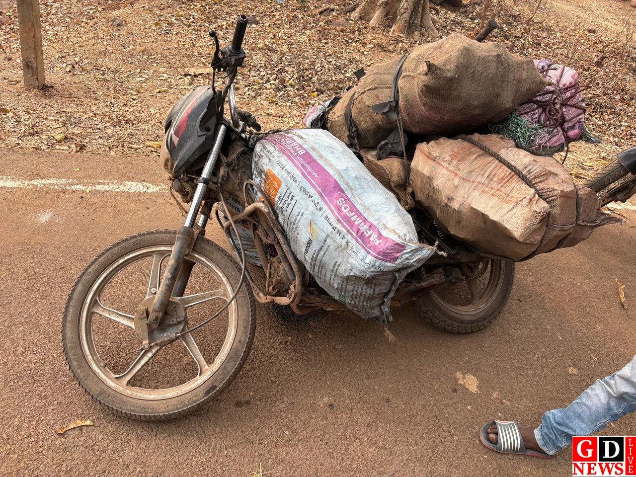 अवैध कोयला परिवहन पर कार्रवाई, कोयला लदा मोटरसाइकिल जब्त।