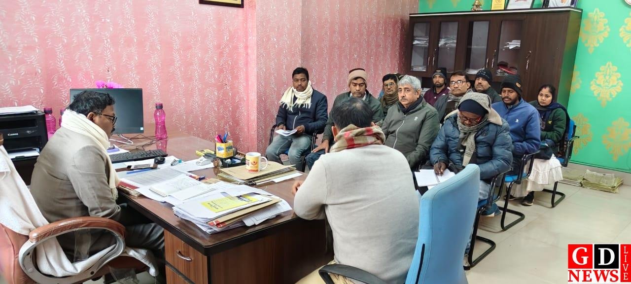हिरणपुर (पाकुड़): मंगलवार को घाघरजानि स्थित प्रखण्ड के कार्यालय कक्ष में मनरेगा व आवास योजनाओ को लेकर समीक्षा बैठक आयोजित हुई। जिसमे सभी पंचायत सचिव , रोजगार सेवक आदि उपस्थित थे। बैठक में बीडीओ ने योजनाओ को लेकर पंचायतवार समीक्षा किया। पंचायत सचिवों को निर्देश देते हुए कहा कि आगामी तीन जनवरी को पूर्ण किये गए अबुआ आवास योजना के लाभुको को गृहप्रवेश कराना सुनिश्चित करे। सभी पंचायतो में आवास योजना कार्य को पूर्ण कराने की दिशा में कार्य करे। इसमे किसी प्रकार की कोताही न बरती जाए। वही बीडीओ ने रोजगार सेवकों को ई केवाईसी कराने का निर्देश दिया । उन्होंने कहा कि सामाजिक अंकेक्षण का एटीआर जल्द से जल्द अपलोड करें। संचालित मनरेगा योजनाओ को लेकर निर्देश दिया कि जल्द से जल्द कार्य को पूर्ण कराए। इस अवसर पर बीपीओ ट्विंकल चौधरी , बीटीएम मो.जुनैद , रविरंजन आदि मुख्य रूप से उपस्थित थे।