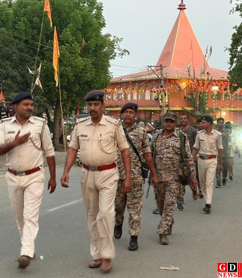 रामनवमी को लेकर पुलिस का फ्लैग मार्च, शांति-सौहार्द का संदेश।