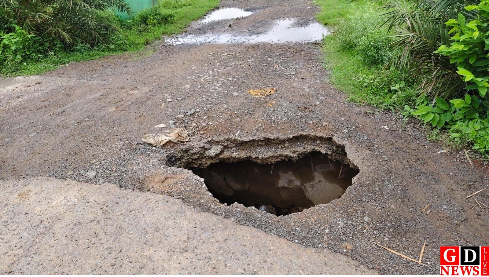 अब्दुल अंसारी पाकुड़िया (पाकुड़): प्रखंड के यज्ञ मैदान से खैरा कांदर, जुगगुड़िया समेत कई गांवों को जोड़नेवाली मुख्य सड़क पर खैरा कांदर तिराहे के पास