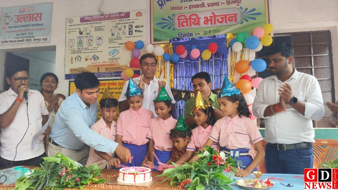 तिथि भोज और जन्मोत्सव का अनोखा संगम, बच्चों के चेहरे पर खिला उत्साह।