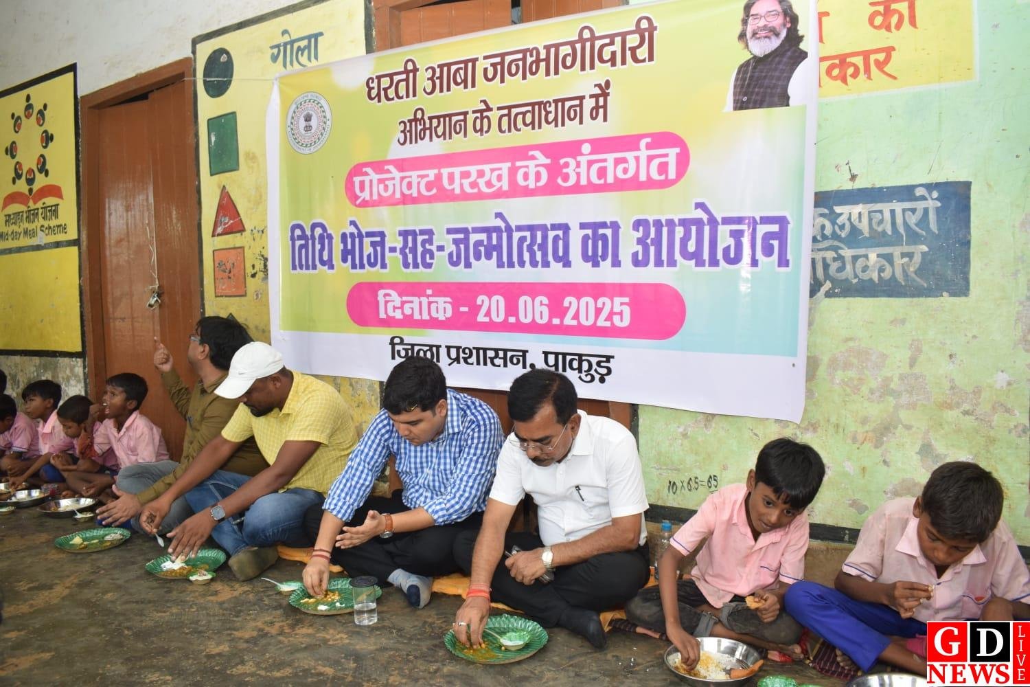 ‘धरती आबा अभियान’ के तहत शहरकोल विद्यालय में खास तिथि भोज। उपायुक्त ने बच्चों संग केक काटा, खास मेनू में पुरी-बुंदिया से मिठाई तक सब