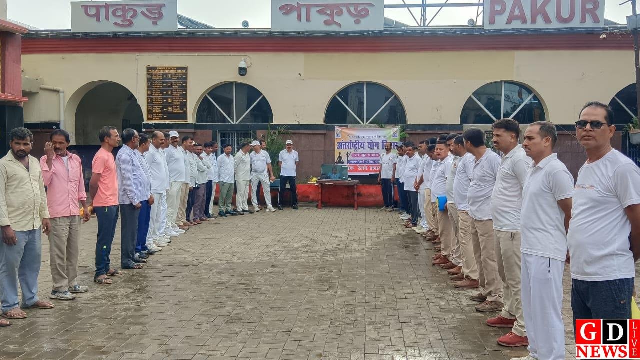 राजकुमार भगत पाकुड़।अंतर्राष्ट्रीय योग दिवस के अवसर रेलवे प्रशासन ,पाकुड़ द्वारा रेलवे स्टेशन परिसर में ही सभी विभागों के पर्यवेक्षक सहित रेलवे कर्मचारी एवं एवं