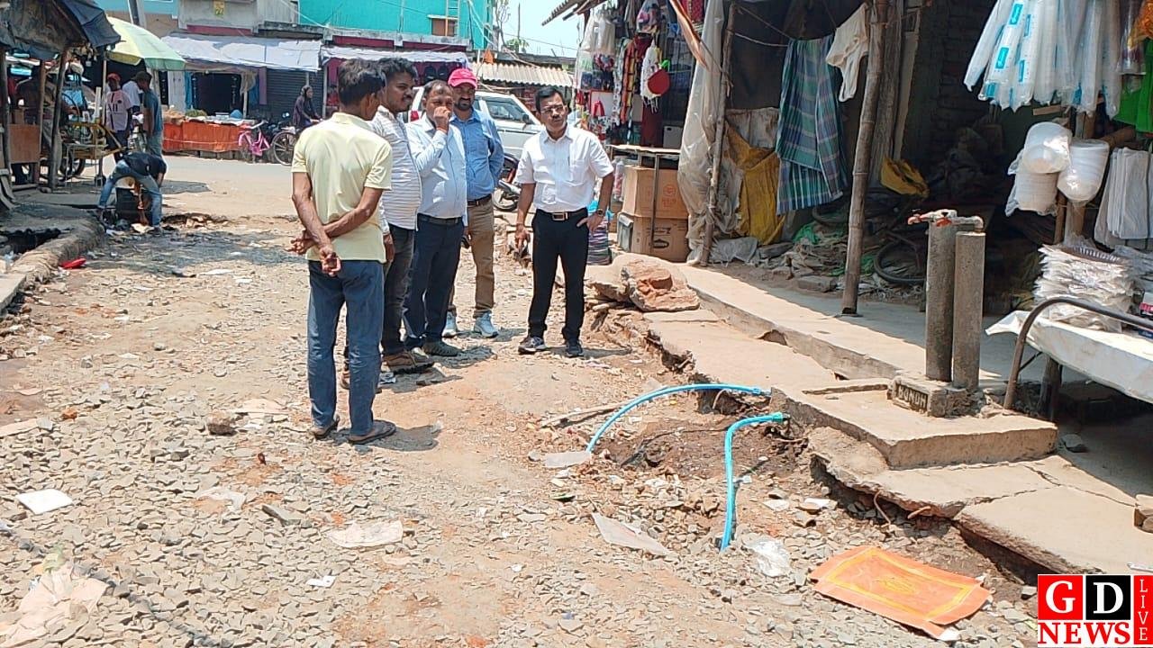 सड़क निर्माण में लापरवाही से क्षतिग्रस्त हुआ जलापूर्ति पाइप, अधिकारी ने दिए सुधार के निर्देश।
