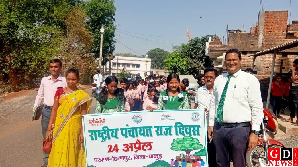राहुल दास हिरणपुर (पाकुड़): राष्ट्रीय पंचायत राज दिवस पर गुरुवार को डांगापाड़ा स्थित उत्क्रमित उच्च विद्यालय के बच्चों ने रैली निकाली। जिसमे पंचायत के मुखिया