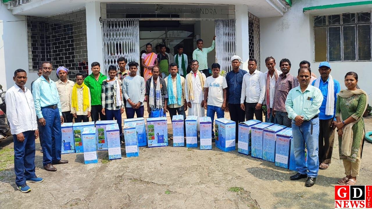 किसानों को मिली बैटरी और हस्त संचालित स्प्रेयर।
