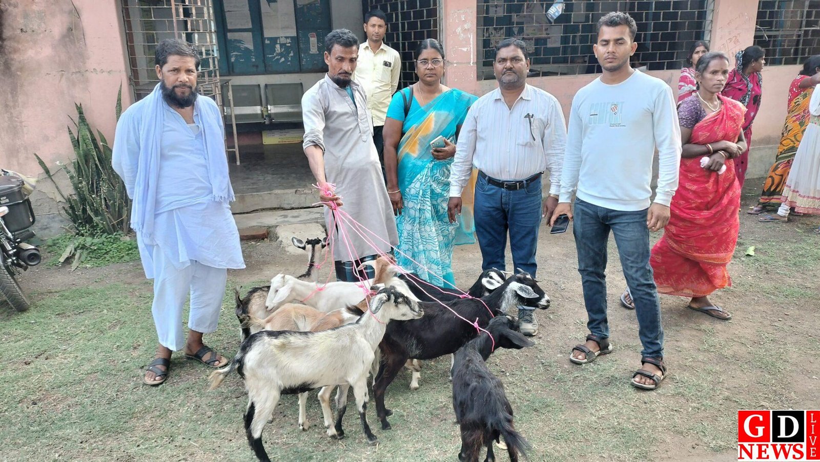 मुख्यमंत्री पशुधन विकास योजना का लाभ, लाभुकों को बकरियों का वितरण।