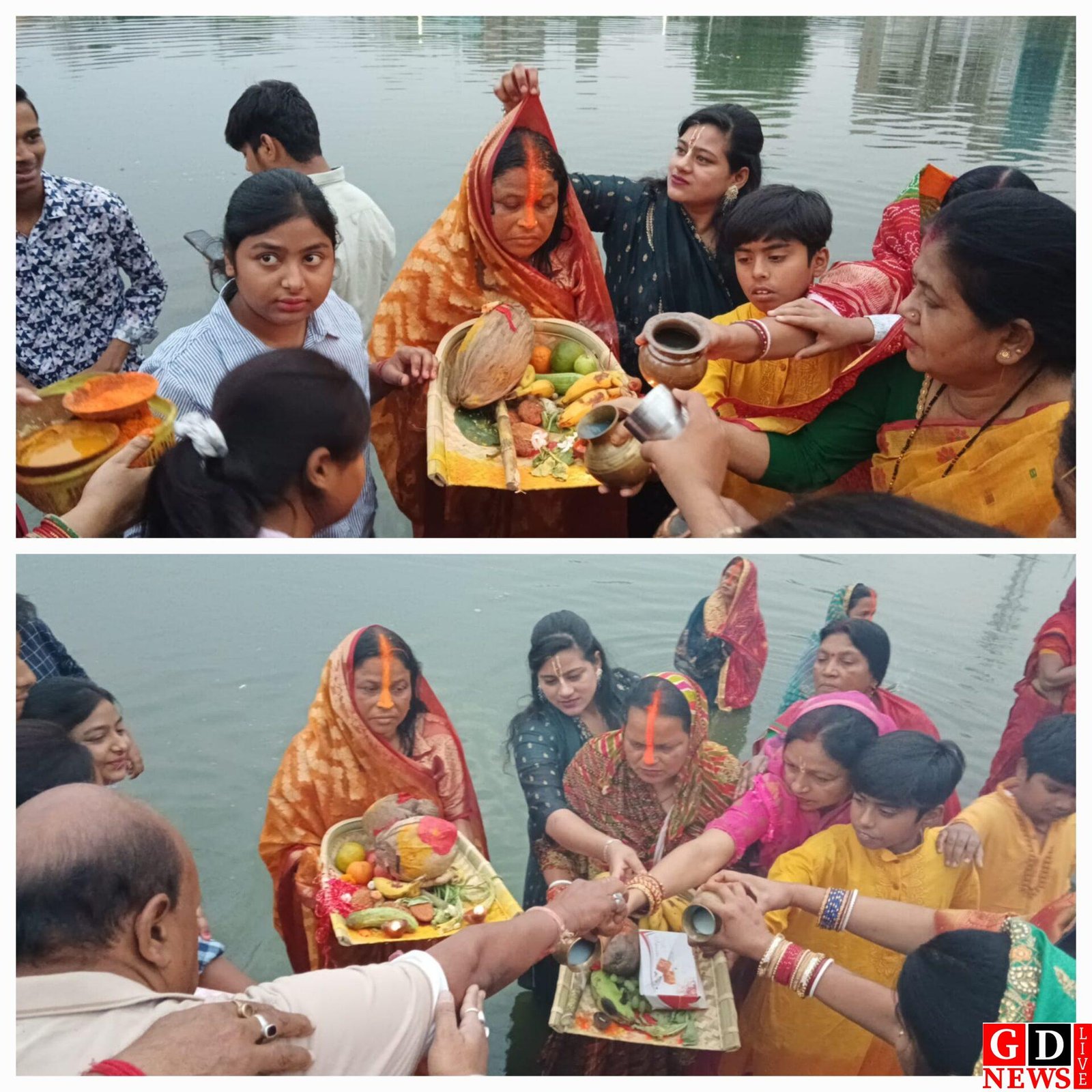 उदीयमान सूर्य को अर्घ्य अर्पित कर छठ व्रती ने तोड़ा 36 घंटे का निर्जला व्रत।