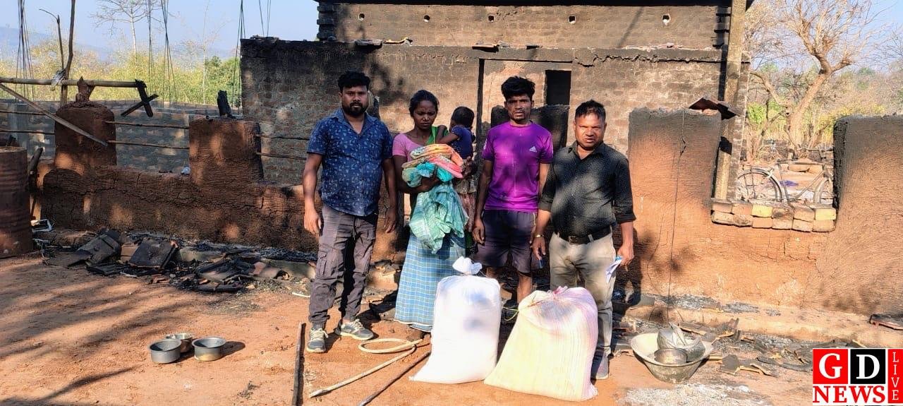 सोमायटाड़ गांव में आग लगने से घर और संपत्ति जलकर राख, पीड़ित परिवार को मिली मदद।