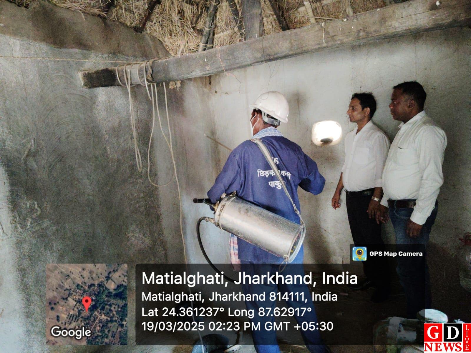 अब्दुल अंसारी पाकुड़िया प्रखंड के राजपोखर पंचायत के मटयलघाटी, खकशा पंचायत के कालीडीह एवं खजूरडंगल पंचायत के गोद्रोशाल गांव में कालाजार उन्मूलन हेतु आई०आर०एस० कीटनाशक