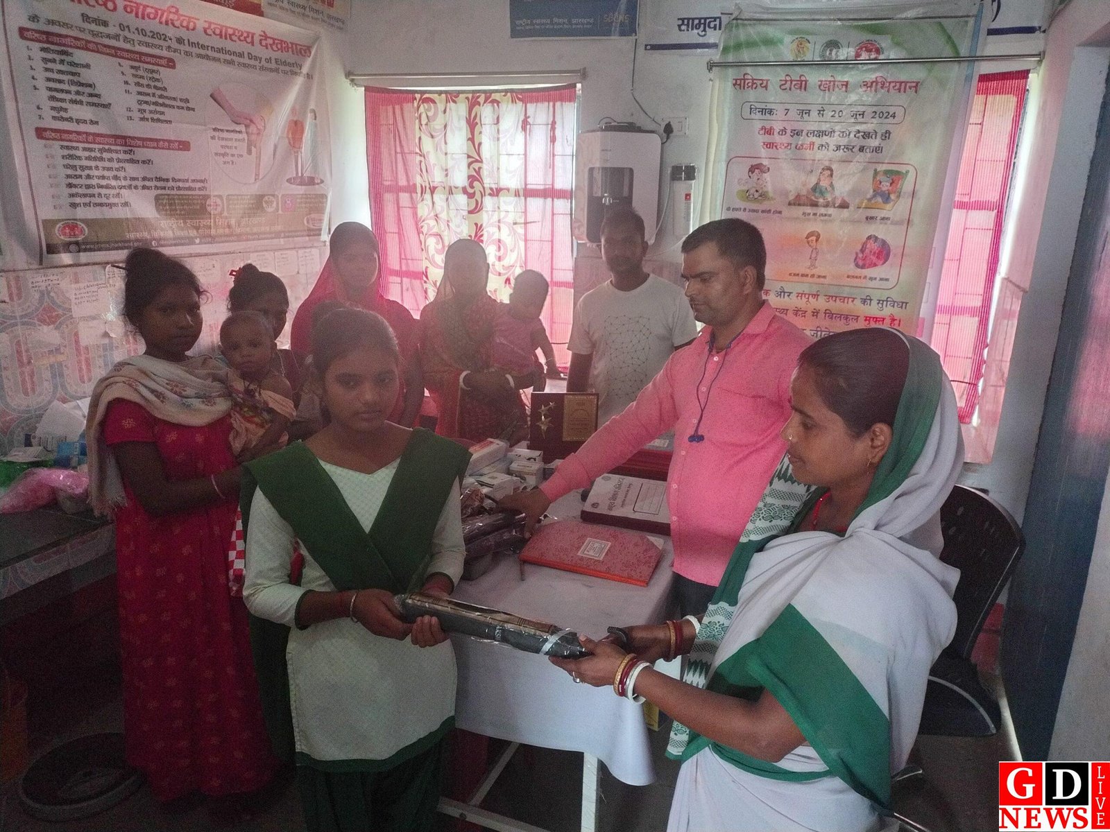किशोरी कन्याओ के बीच किया गया छाता का वितरण।