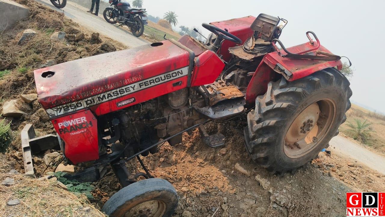 राहुल दास हिरणपुर (पाकुड़): बीते दो दिनों से दुलमी गांव के सड़क किनारे स्थित खाई में दो दिनों से एक ट्रैक्टर लावारिश अवस्था मे पड़ी