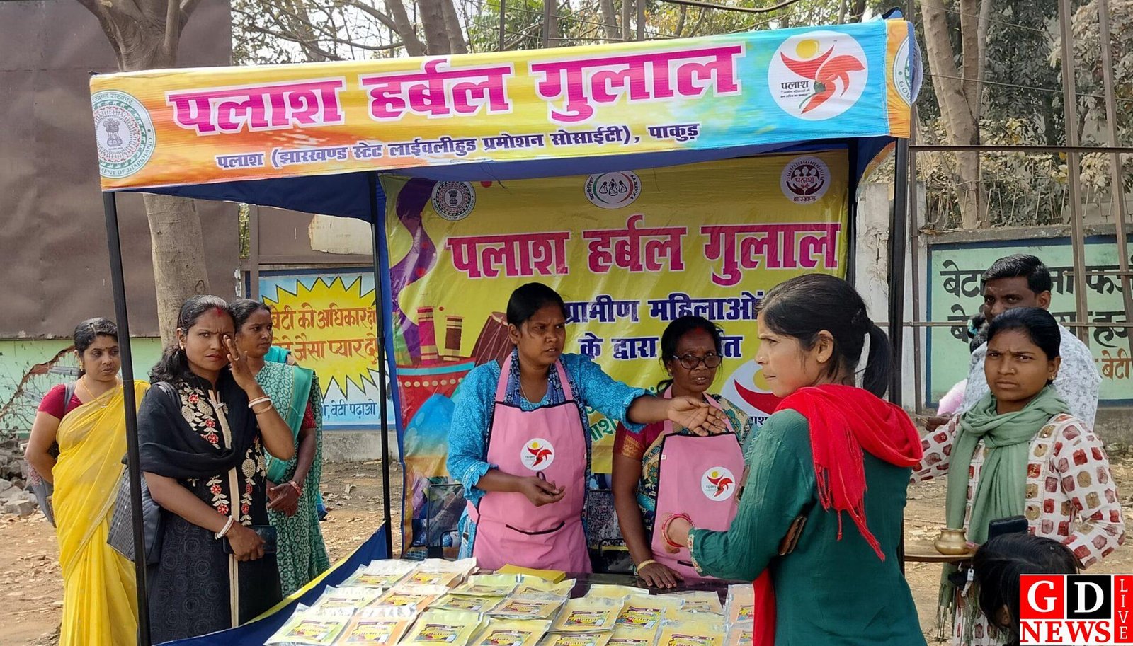 जेएसएलपीएस के दीदियों द्वारा समाहरणालय के मुख्य द्वार पर पलाश होली स्पेशल डिस्प्ले स्टॉल लगाए गए । जिसमें प्राकृतिक उत्पादों से तैयार हर्बल गुलाल बेचती