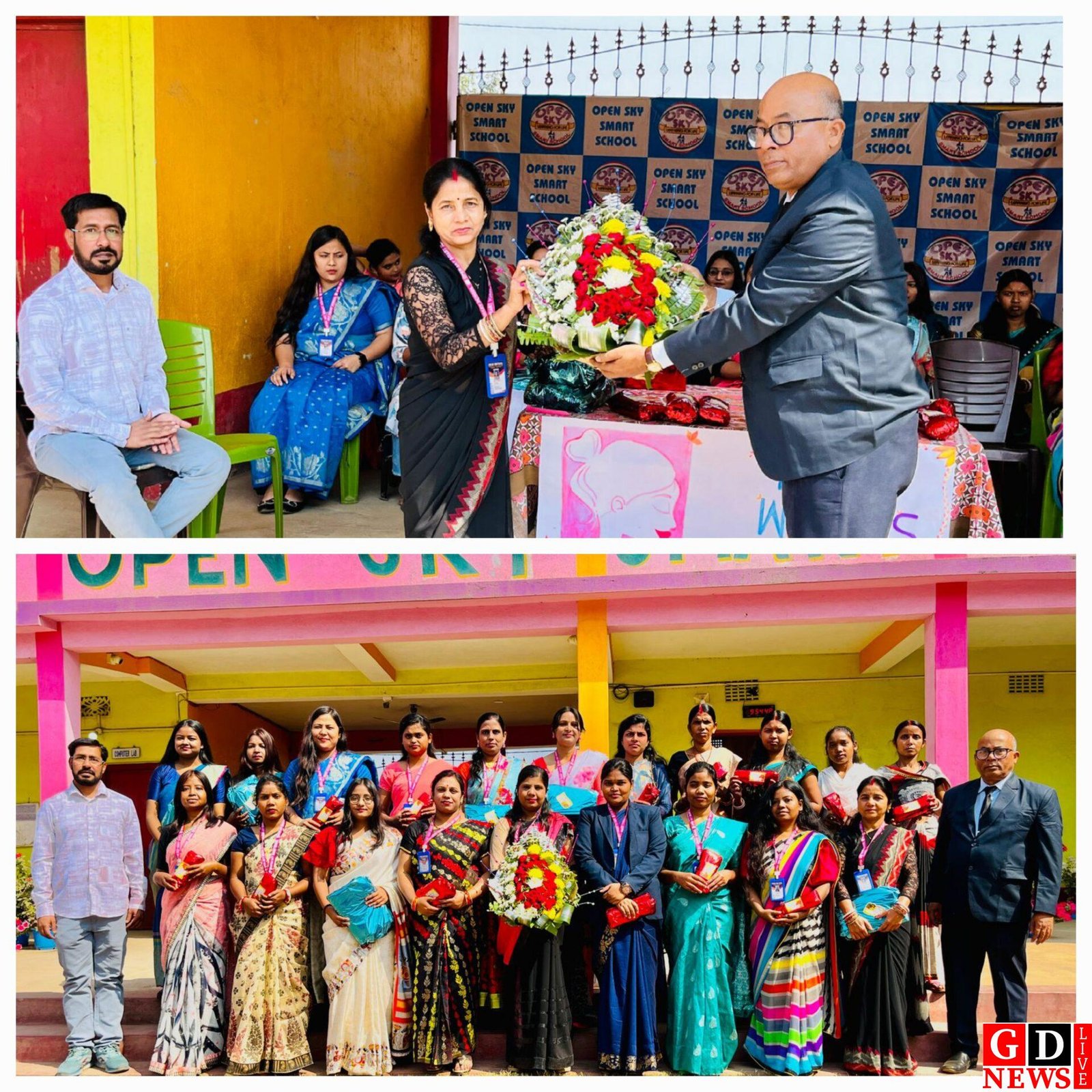 राजकुमार भगत पाकुड़। शनिवार को ओपेन स्काई स्मार्ट स्कूल, पाकुड़ में अंतर्राष्ट्रीय महिला दिवस के अवसर विद्यालय के निदेशक मनोज भगत और प्रधानाचार्य गौतम बेलारी
