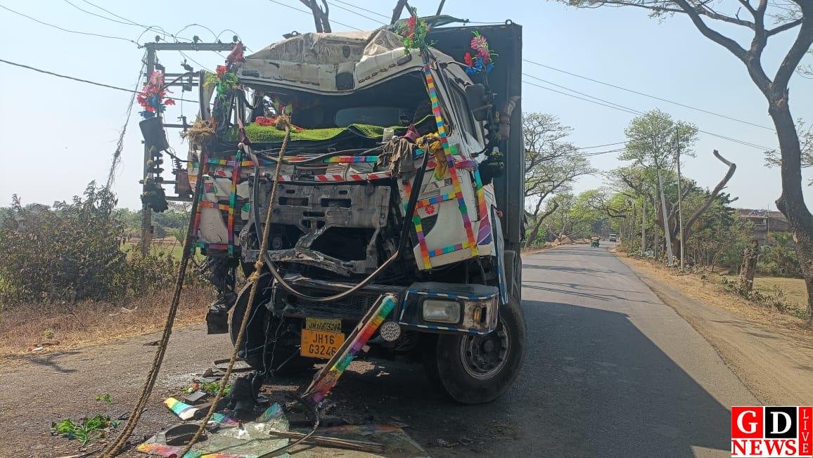 सड़क दुर्घटना में दो घायल, प्याज लदा ट्रक और हाइवा की टक्कर।