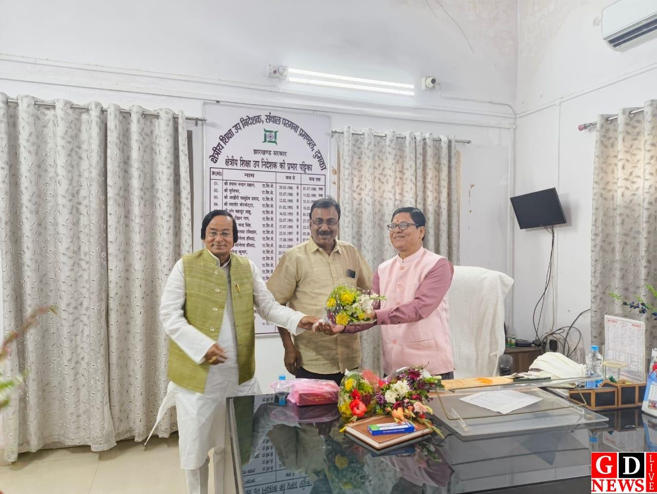क्षेत्रीय शिक्षा संयुक्त निदेशक संथाल परगना को पुष्प गुच्छ देकर किया गया सम्मानित
