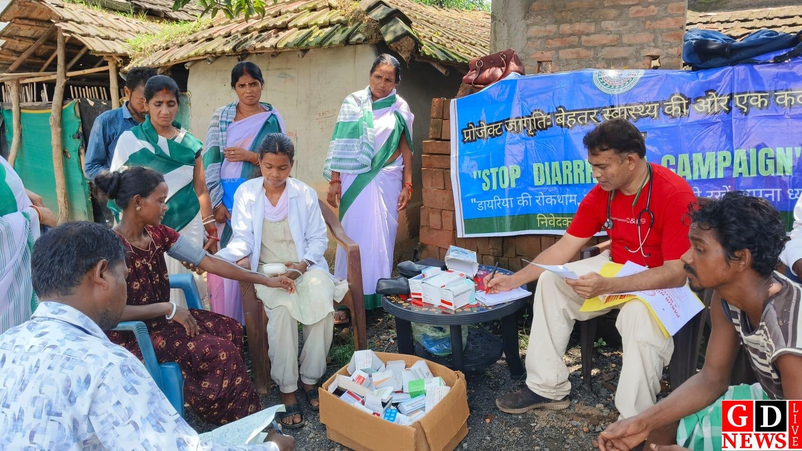 सुदूर गांवों में स्वास्थ्य सेवाएं पहुंचाने को लेकर लगा शिविर, मरीजों की जांच कर बांटी गई दवाएं।
