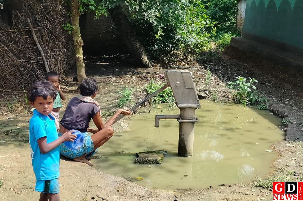 पाकुड़, दादपुर पंचायत। पोखरिया गांव में वर्षों से उपयोग में लाए जा रहे हैंडपंप से अब दूषित पानी निकलने लगा है, जिसे पीने को ग्रामीण