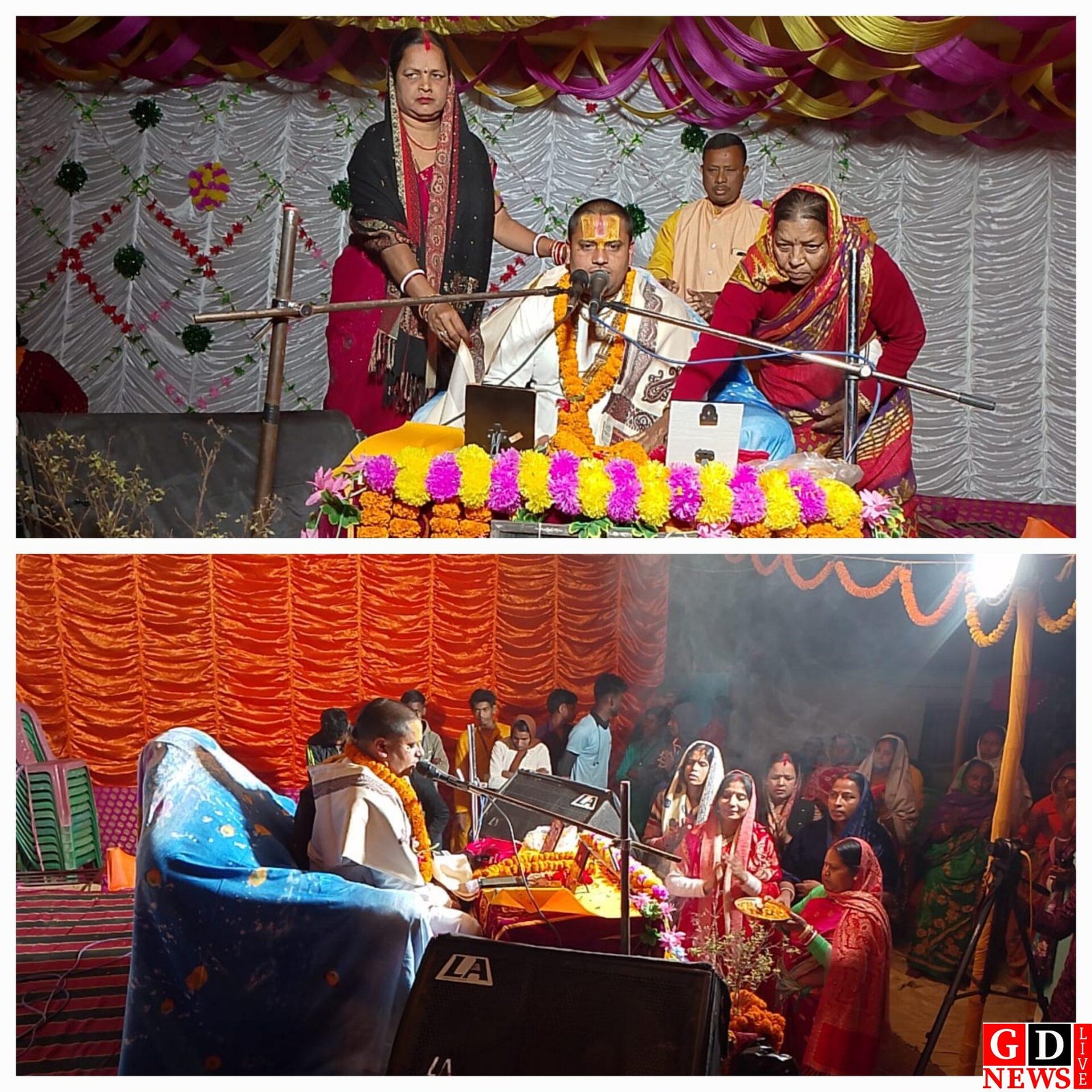 पाकुड़िया शिवरात्रि महोत्सव के अवसर पर प्रखंड के मोंगलबांध ग्राम स्थित शिव मंदिर प्रांगण में अनुष्ठान के प्रथम रोज गुरुवार की रात्रि को शिव महापुराण