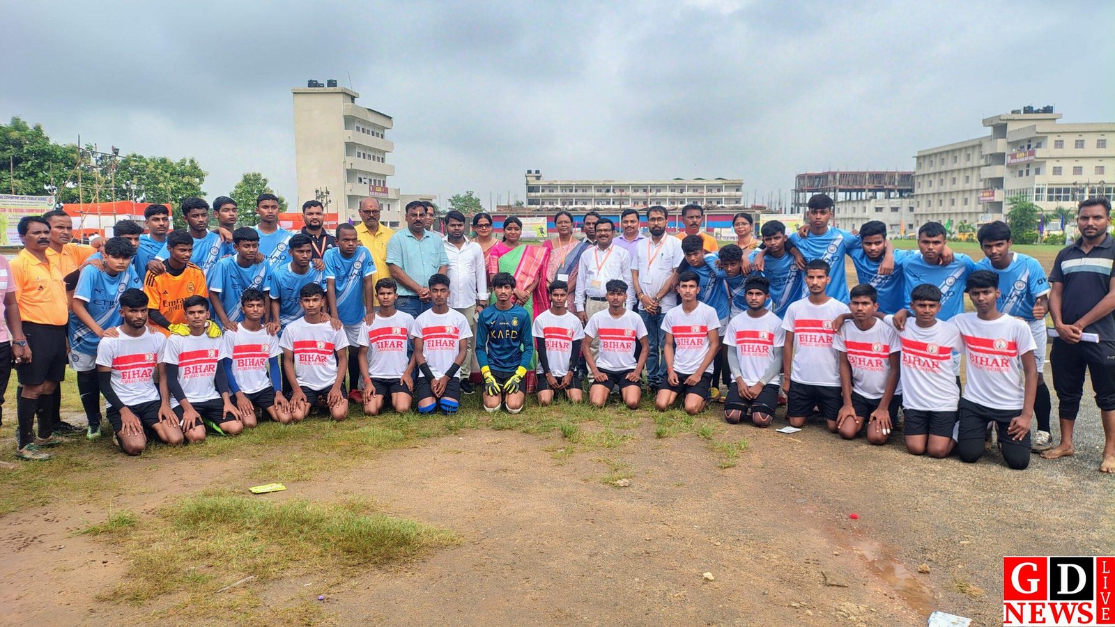 अक्षय कुमार सिंह रामगढ़। राधा गोविंद सीनियर सेकेंडरी स्कूल द्वारा आयोजित सीबीएसई क्लस्टर – lll फुटबॉल टूर्नामेंट राधा गोविंद विश्वविद्यालय एवं छावनी परिषद फुटबॉल ग्राउंड