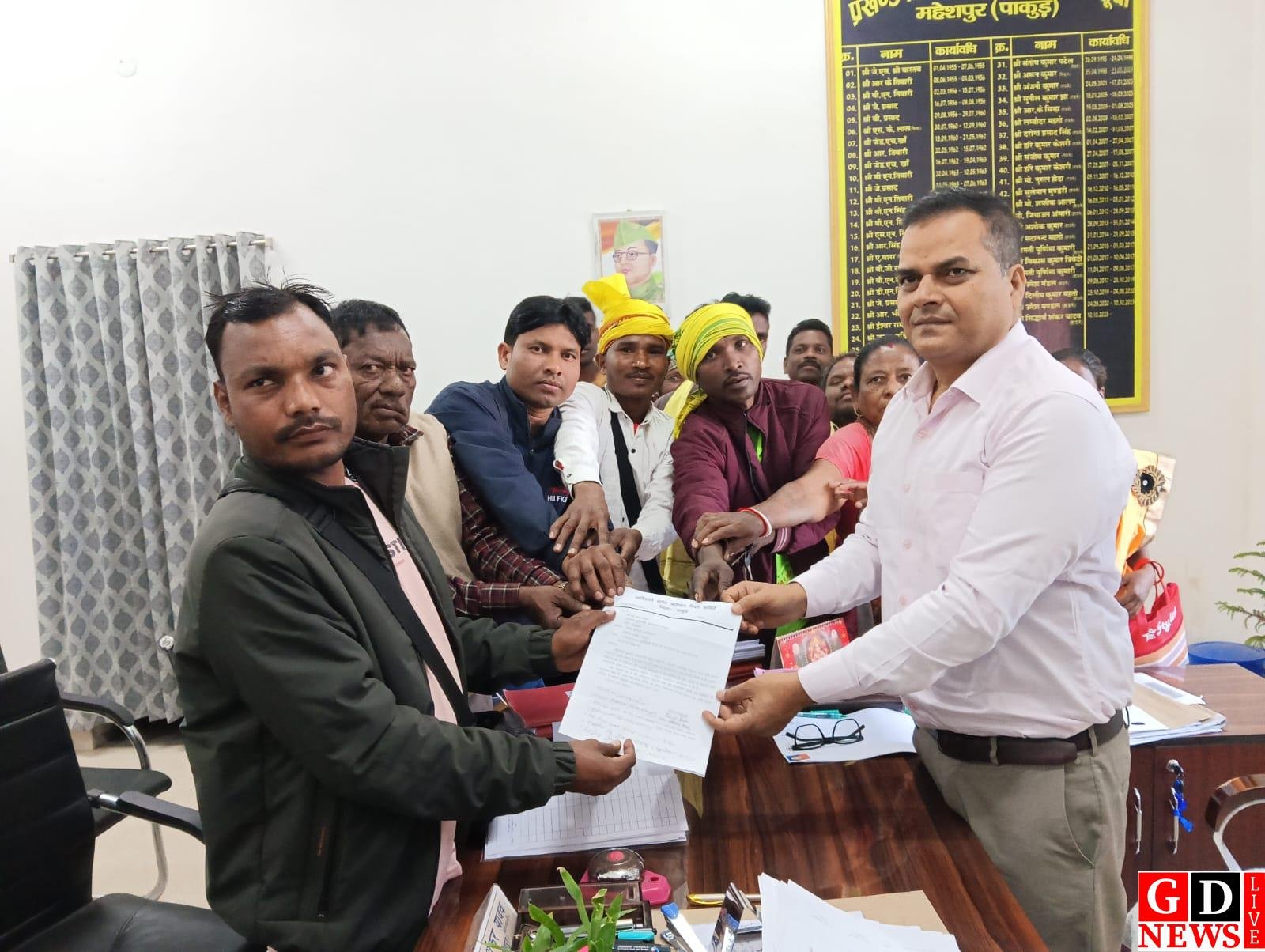 आदिवासी सिंगल अभियान जिला समिति के द्वारा महेशपुर बीडीओ को मुख्यमंत्री के नाम पर सौंपा ज्ञापन।