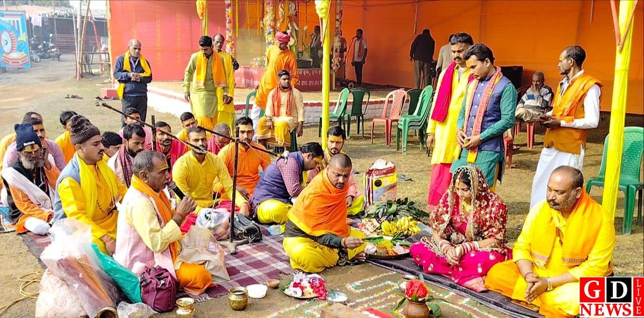 श्री-श्री 1008 महारुद्र यज्ञ शुरू, सात दिवसीय धार्मिक अनुष्ठान में यज्ञ कुंड में अग्नि प्रवेश।