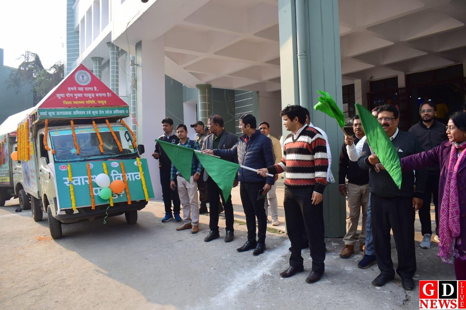 राजकुमार भगत समाहरणालय परिसर से स्पर्श कुष्ठ जागरूकता रथ को उपायुक्त मनीष कुमार, उप विकास आयुक्त महेश कुमार संथालिया, परियोजना निदेशक आईटीडीए अरुण कुमार एक्का,