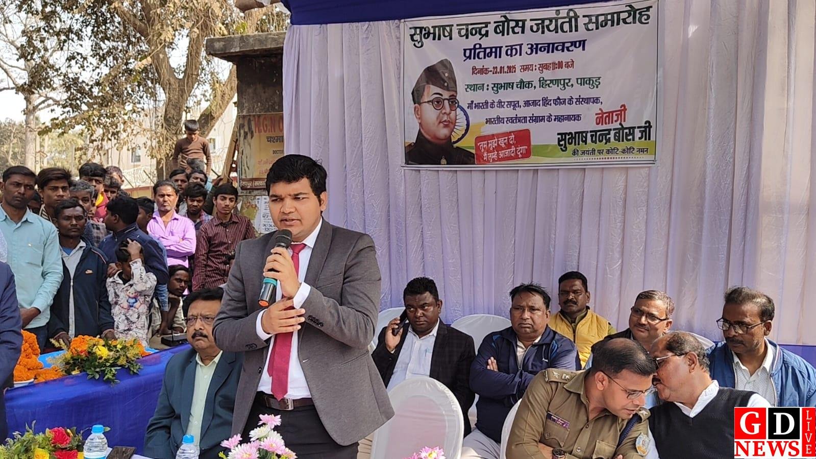 सुस्मित तिवारी हिरणपुर, पाकुड़ में नेताजी सुभाष चंद्र बोस की 127वीं जयंती के उपलक्ष्य में एक भव्य समारोह का आयोजन किया गया। इस अवसर पर