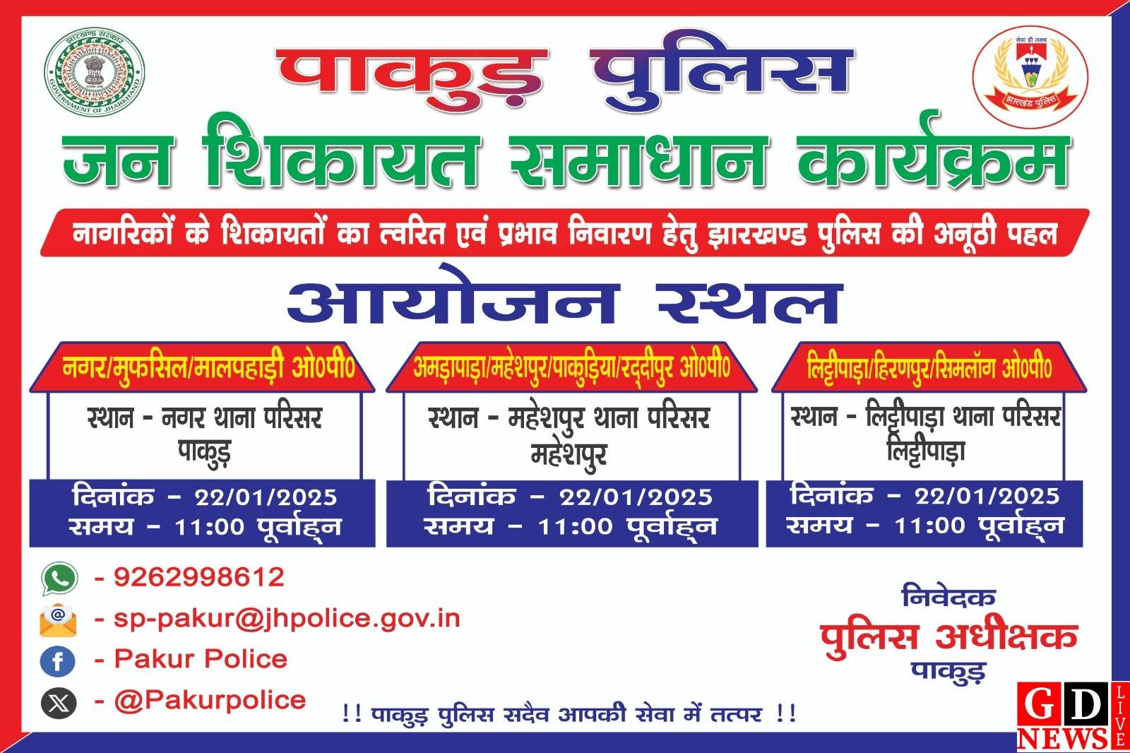 राजकुमार भगत पाकुड़।पाकुड़ पुलिस आम जनों की सहायता के लिए तत्पर है। पुलिस अधीक्षक प्रभात कुमार के निर्देश पर पाकुड़ में 22 जनवरी को जन