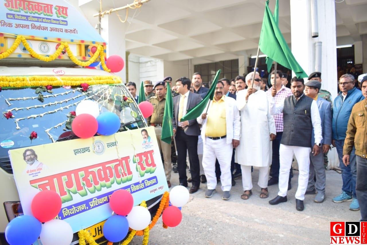 मंत्री और उपायुक्त ने श्रम विभाग की योजनाओं के प्रचार के लिए जागरूकता रथ को दिखाई हरी झंडी।