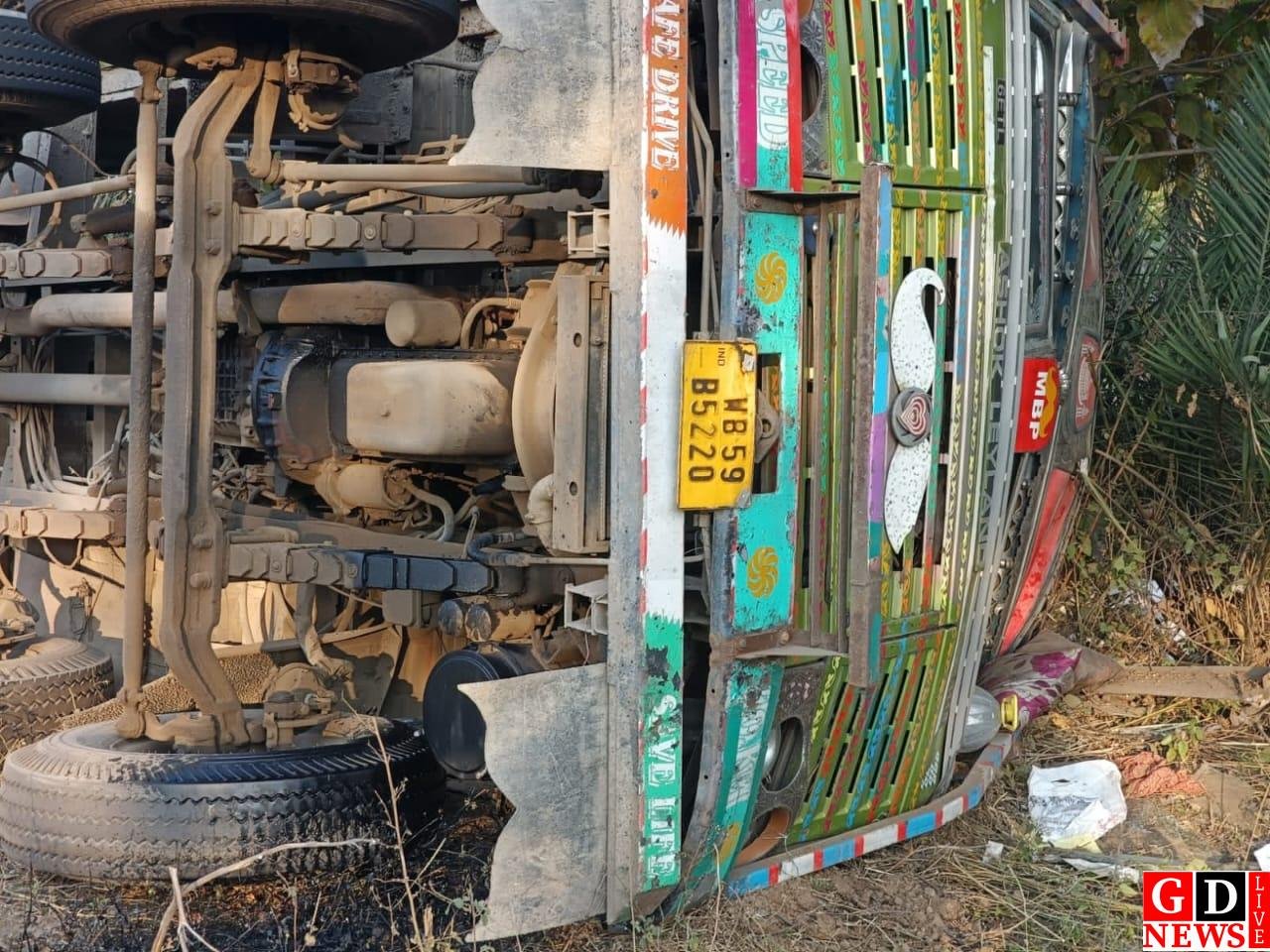 लिट्टीपाड़ा में ट्रक पलटने से बड़ा हादसा टला, चालक और उप चालक बाल-बाल बचे।