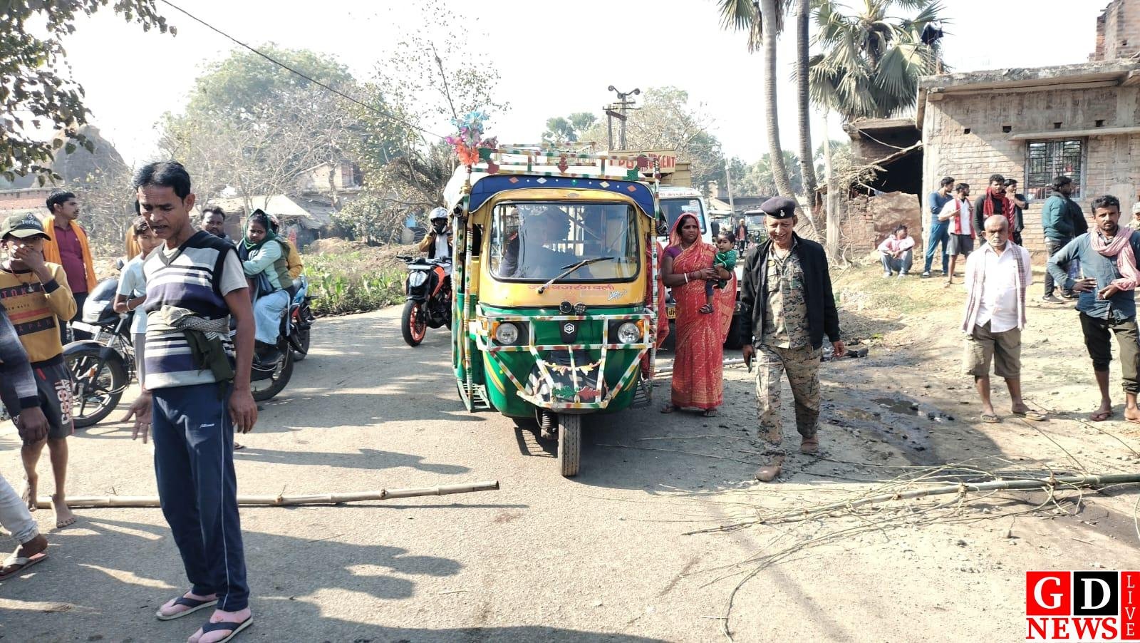जल जमाव को लेकर ग्रामीणों ने किया सड़क जाम, सीओ के आश्वासन के बाद हटा जाम।