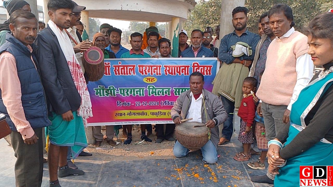 इकबाल हुसैन पाकुड़िया स्थित मोँगलाबांध निवासी नवनियुक्त परगना विक्रम टुडू के आवासीय परिसर में रविवार को 169 वाँ संताल परगना स्थापना दिवस सह मांझी परगना