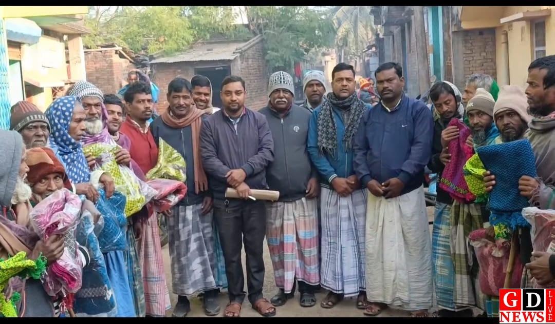 मनीरामपुर मुखिया ने असहायों के बीच बांटे ऊनी कपड़े व चादर