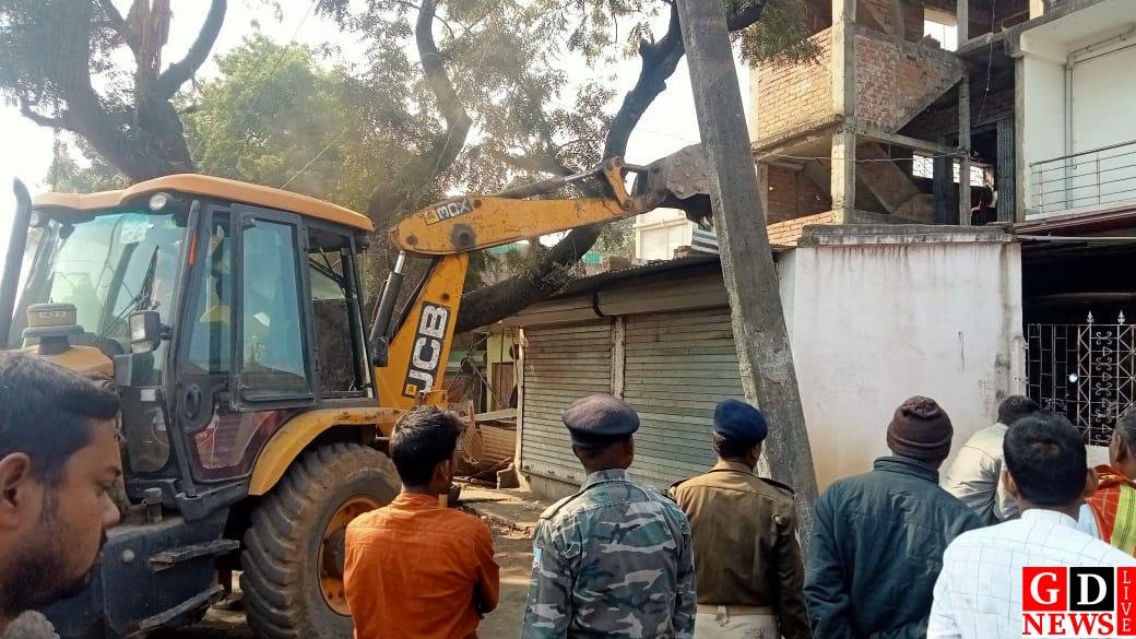 हिरणपुर व लिट्टीपाड़ा प्रशासन ने संयुक्त रूप से की कार्रवाई। राहुल दास हिरणपुर (पाकुड़): हिरणपुर बाजार में अतिक्रमण को लेकर रविवार को प्रशासन ने सख्त