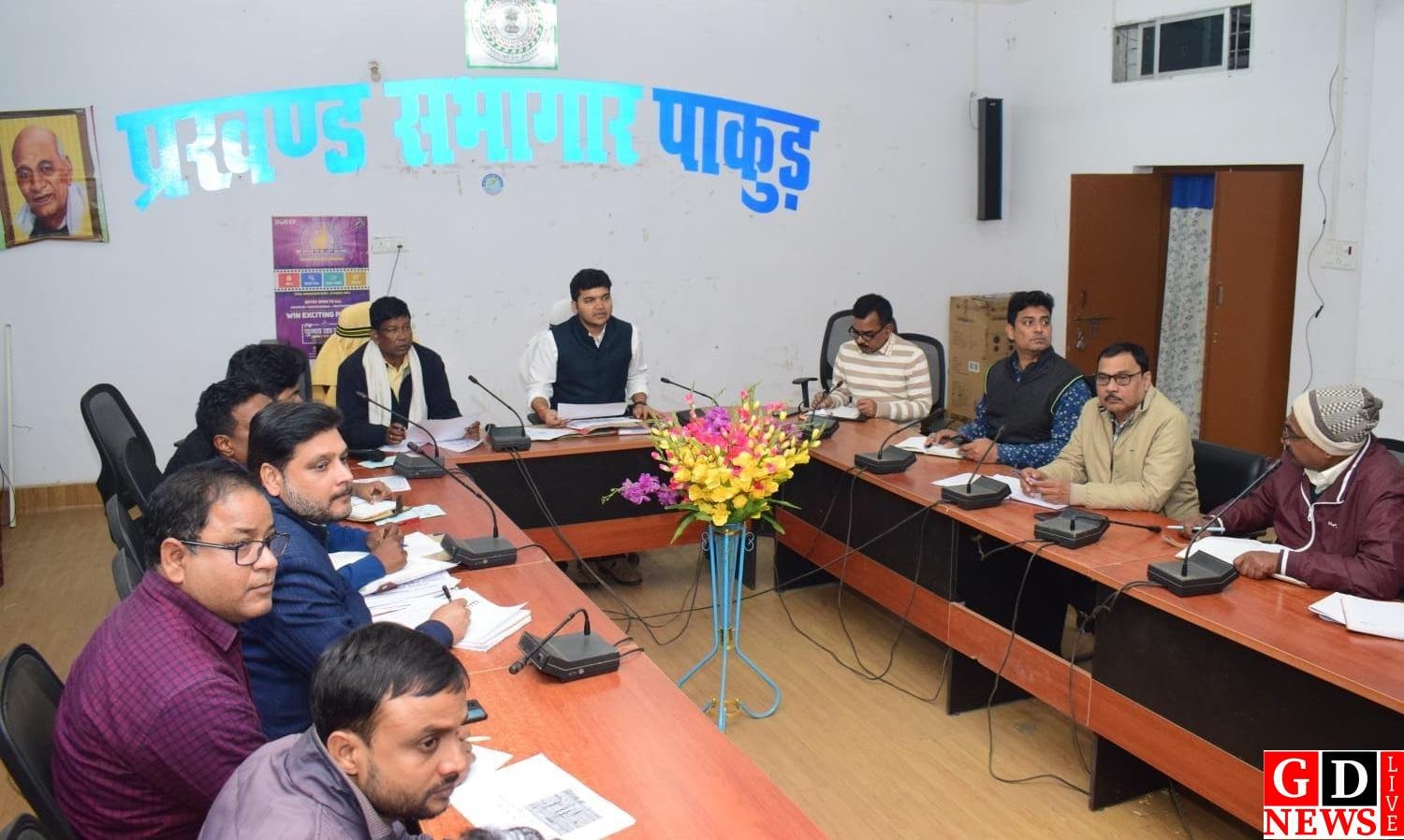 सतनाम सिंह सदर प्रखंड पाकुड़ स्थित सभागार में उपायुक्त मनीष कुमार की अध्यक्षता मे सदर प्रखंड के सभी पदाधिकारीयों एवं कमियों के साथ बैठक आयोजित