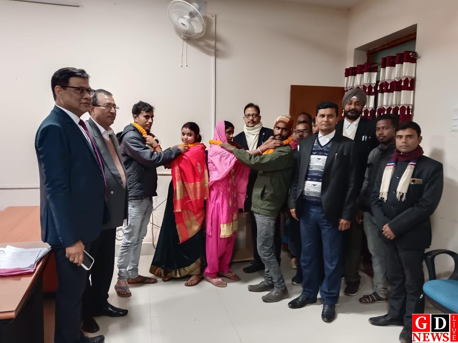 दोनों दंपतियों ने फूल माला और मिठाई के साथ एक दूसरे के साथ रहने का किया वादा सतनाम सिंह झालसा रांची के निर्देशानुसार 9 दिसंबर