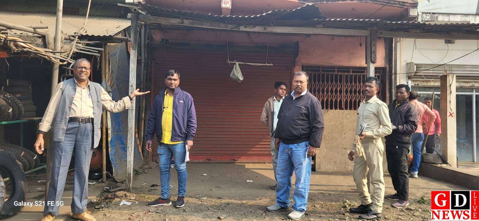 हिरणपुर बाजार के मुख्य सड़क में अतिक्रमण को लेकर लिट्टीपाड़ा अंचल प्रशासन के द्वारा की गई मापी।