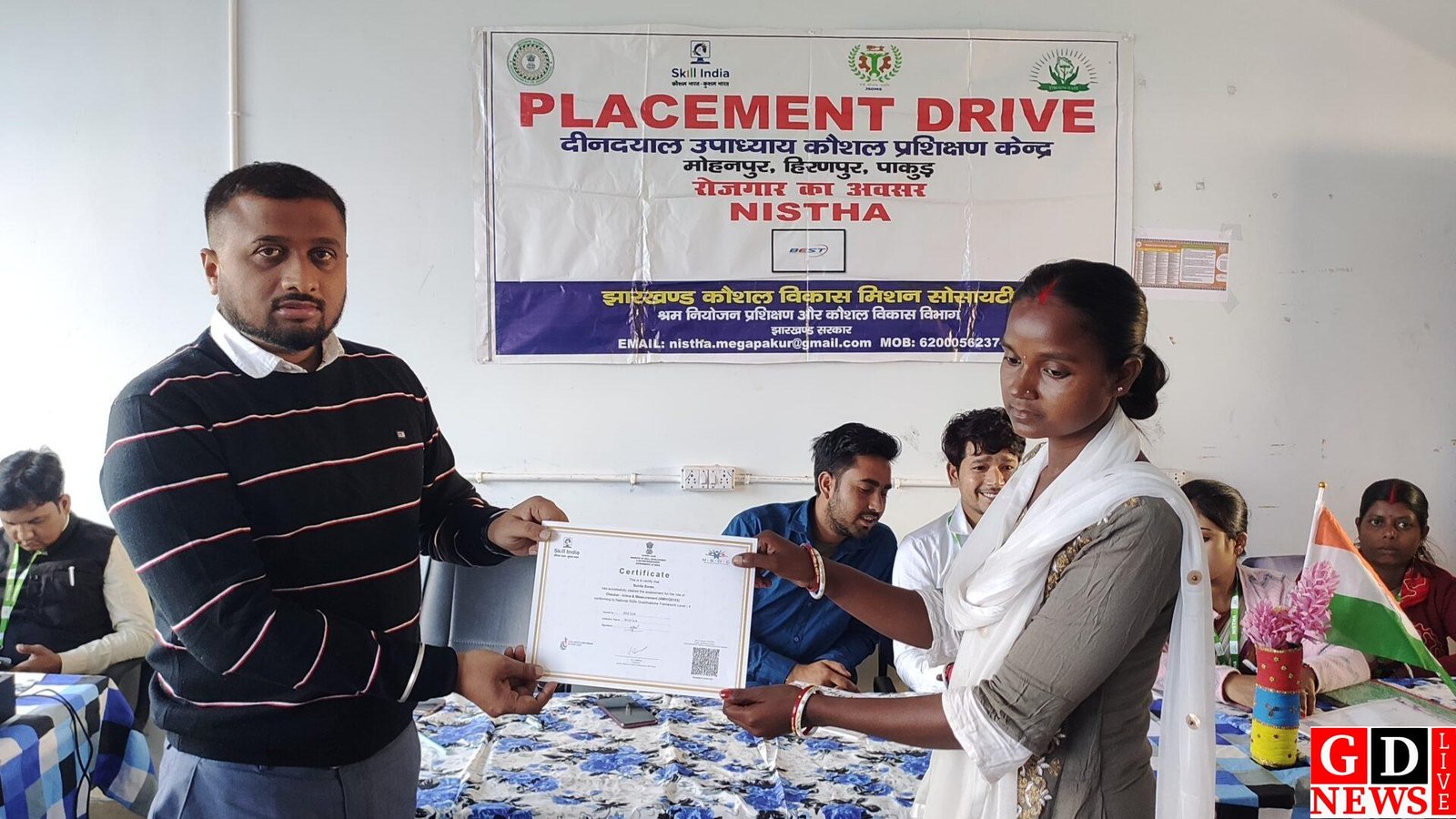 राहुल दास हिरणपुर (पाकुड़):बुधवार को हिरणपुर प्रखंड क्षेत्र के मोहनपुर स्थित कौशल विकास केंद्र में मेगा जॉब फेयर का आयोजन किया गया। जिसमें 74 प्रशिक्षित