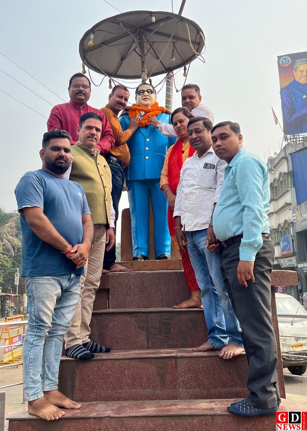 राजकुमार भगत पाकुड़। भारतीय संविधान दिवस के 75वीं वर्षगांठ पर भाजपा पाकुड़ के कार्यकर्ता द्वारा नगर में स्थापित संविधान निर्माता बाबा साहब भीमराव अंबेडकर के