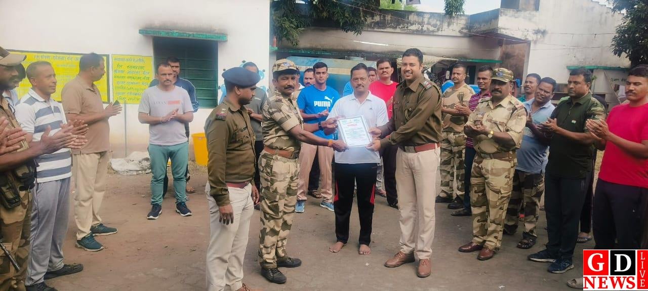 महेशपुर में शांतिपूर्ण चुनाव सम्पन्न कराने के बाद सीआईएसएफ जवानों को थानेदार ने किया सम्मानित