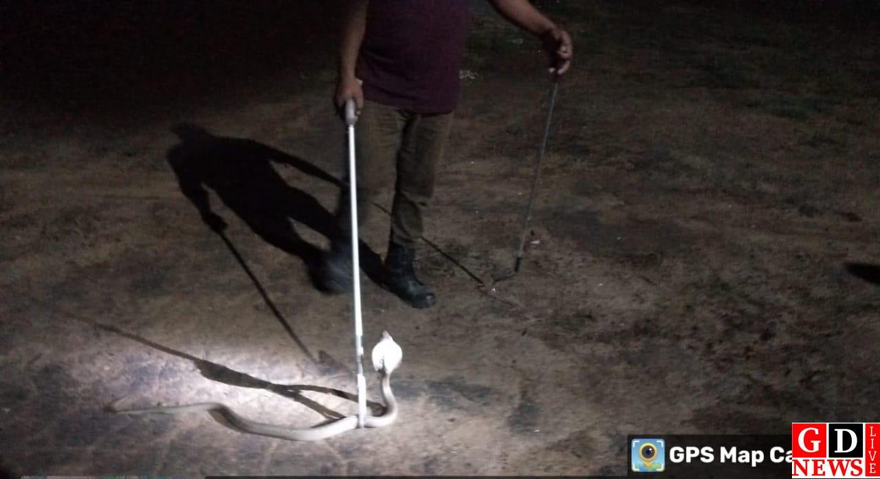 वन विभाग की रेस्क्यू टीम ने कोबरा सांप का किया सुरक्षित रेस्क्यू।
