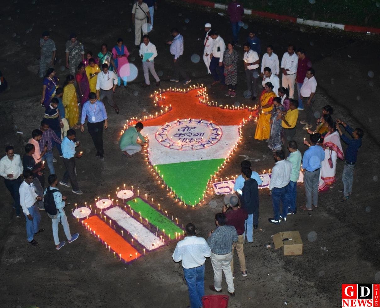 भारत के मानचित्र पर दीया जलाकर मतदाताओं को बढ़-चढ़कर मतदान करने का दिया संदेश
