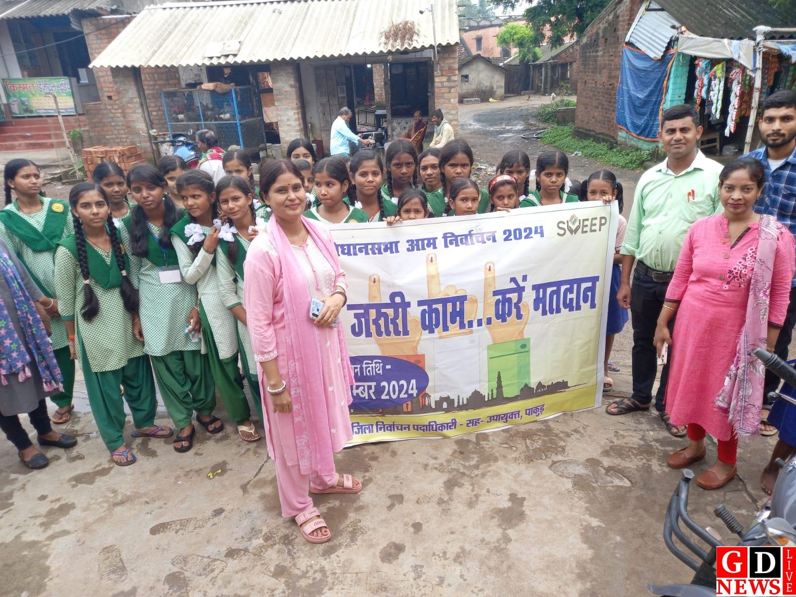 प्रशांत मंडल लिट्टीपाड़ा(पाकुड़ )स्वीप कार्यक्रम के तहत क्षेत्र की जनता को मतदान के प्रति जागरूक करने को लेकर शनिवार को कस्तूरबा आवासीय विद्यालय के छात्राओं