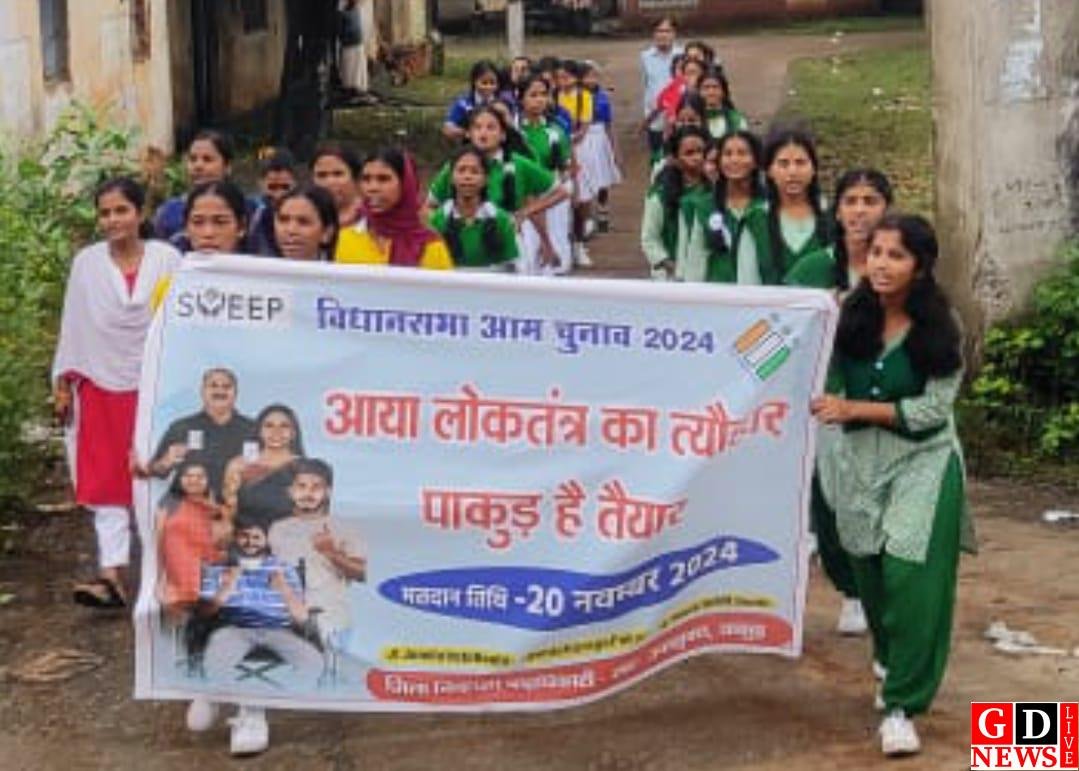 कस्तूरबा आवासीय विद्यालय की छात्राओं ने निकाली रैली, वोटरों को किया जागरूक।