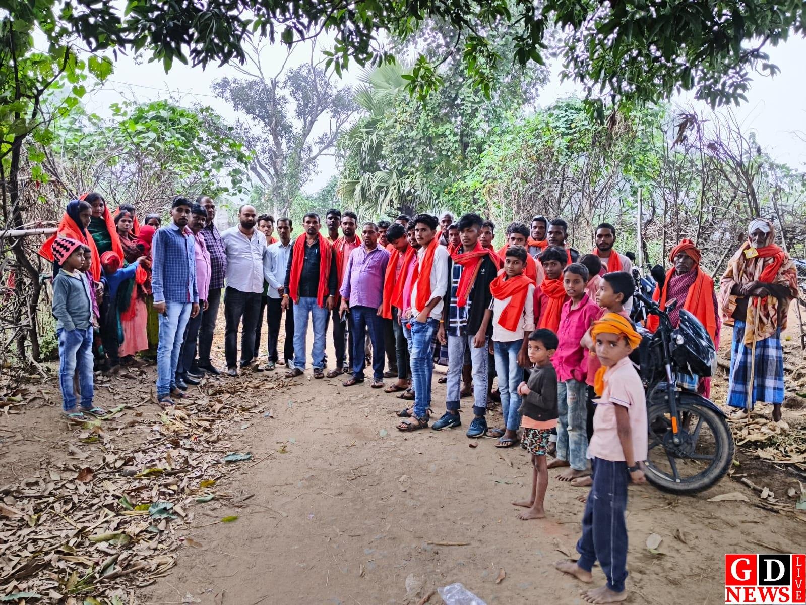 अमर भगत अमड़ापाड़ा से अयोध्या के लिए दीपोत्सव कार्यक्रम में भाग लेने के लिए आदिमजनजाति समाज के सैकड़ों महिला पुरुष मोतीलाल पहाड़िया के नेतृत्व में