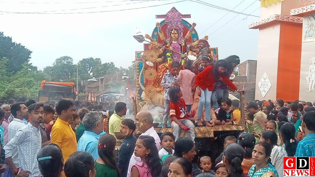 देवी दुर्गा की प्रतिमा विसर्जन पर उमड़ी श्रद्धालुओ की भीड़