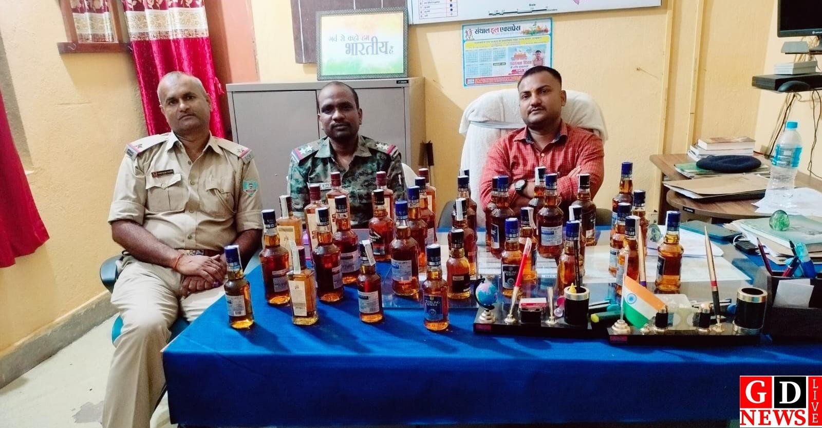 पुलिस की छापेमारी में 30 बोतल विदेशी शराब जब्त।